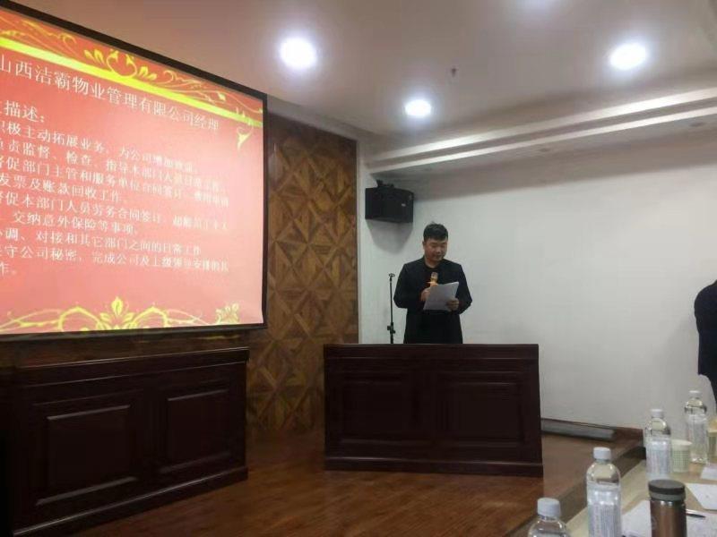 12月20日下午,晉城市潔霸清潔服務(wù)股份有限公司開(kāi)展中層管理人員競(jìng)聘演講活動(dòng),公開(kāi)競(jìng)聘選拔物業(yè)管理公司經(jīng)理,運(yùn)營(yíng)中心經(jīng)理,清潔用品超市店長(zhǎng)3個(gè)職位的中層管理人員。公司領(lǐng)導(dǎo)班子成員和部分管理人員出席活動(dòng)。