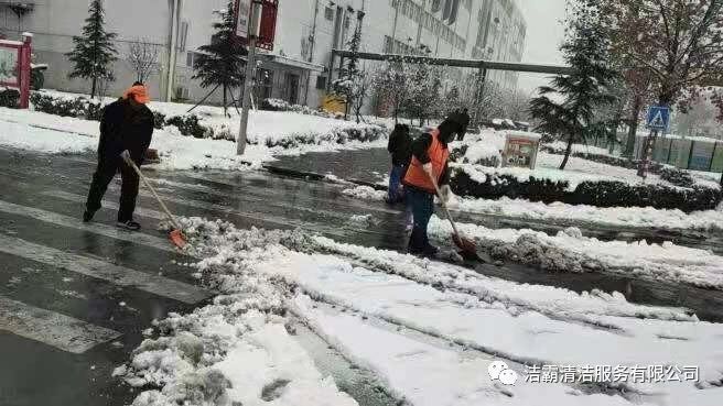 為了消除安全隱患,確保人們出行安全,潔霸公司各個(gè)項(xiàng)目部、服務(wù)點(diǎn)也積極行動(dòng)起來(lái),投身到掃雪活動(dòng)中。他們有的向地面撒鹽,有的用掃雪機(jī)清掃積雪,有的拿鐵鍬鏟雪,有的拿笤帚掃雪,有的用簸箕攬,也有的用桶子裝……雖然寒冷,但大家的心卻很溫暖,熱火朝天的掃雪場(chǎng)面給這個(gè)寒冷的冬季帶來(lái)一絲暖意。為掃出一片安全通道,大家共同努力著,天空中飄著的雪花與大家忙碌的身影構(gòu)成了雪后一道靚麗的風(fēng)景線。