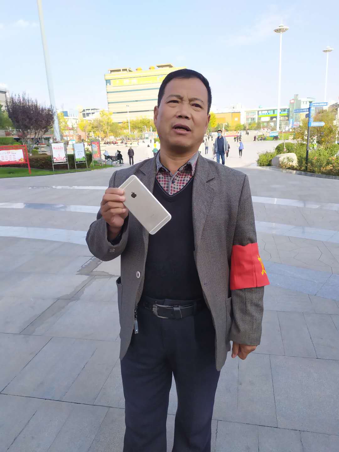 2020年10月31日下午2時30分左右,潔霸公司保安人員王紅廷師傅在人民廣場西門執(zhí)勤過程中,發(fā)現(xiàn)臺階上被人丟失的一部銀灰色的蘋果手機(jī),失主已經(jīng)離開,為防止手機(jī)被無關(guān)人員撿走,他趕忙將手機(jī)交至人民廣場辦公室進(jìn)行登記備案,并且想到失主一定焦急萬分,隨后到西門等待失主回來找手機(jī),一個小時以后,一個面色匆匆的小姑娘來到了西門說尋找丟失的手機(jī),王紅廷師傅把她領(lǐng)到廣場辦公室,讓她對自己丟失的手機(jī)進(jìn)行一個簡單直觀的描述后,當(dāng)場和廣場辦公室人員一同確認(rèn)這個小姑娘就是手機(jī)的主人,面對丟而復(fù)得的手機(jī),小姑娘激動地說,回來找只是僥幸心理,一直想的是手機(jī)應(yīng)該早被人拿走了,沒想到真的就找到了,無數(shù)次的真誠地和王紅廷師傅說著謝謝!王紅廷師傅用簡樸的語言說,換了誰都一樣,大家都會這么做!