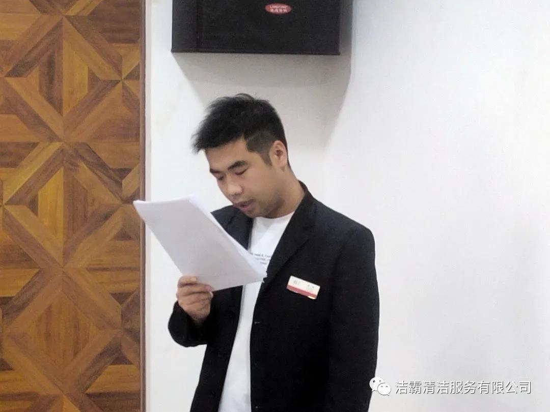山西潔霸物業(yè)管理有限公司經(jīng)理李廣忠、會計(jì)張青霞、出納王頓花、晉城市合眾力勞務(wù)派遣有限公司經(jīng)理成濤、出納劉雨星、晉城市潔霸清潔服務(wù)股份有限公司工程部文員張陽楠、綜合辦公室車輛管理員呂衛(wèi)東、人力資源部文員呂利清、山西百潔物業(yè)服務(wù)有限公司出納王笑依次上臺作了述職匯報(bào)。